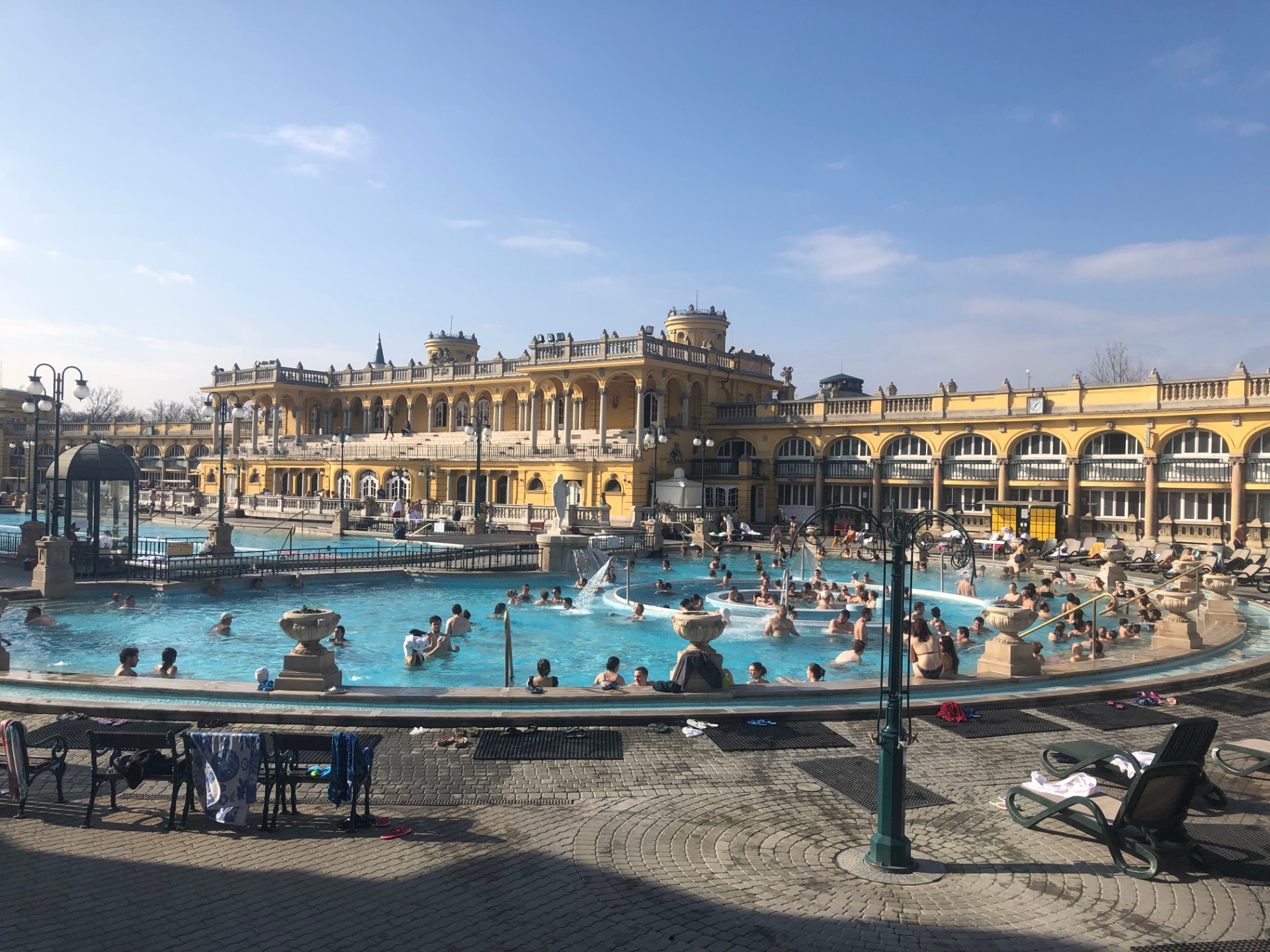 Io, nel mio viaggio a Budapest, mi sono lasciata rapire dalle terme, a mio avviso, più affascinanti: le terme di Shéchenyi. Sono le più grandi d'Europa, composte da 3 piscine interne e 10 esterne con l'acqua che va dai 28° ai 40° e tante saune. Furono costruite intorno al 1910: sembra di fare un vero e proprio salto nel tempo, rivivendo la belle époque. Durante i bagni fumanti si ammirano le colonne e gli archi di una gialla villa neo barocca, uno stile elegante, dettagliato, una vera e propria opera d'arte. D'estate è il luogo ideale per andare a prendere il sole nel grande spazio adiacente alle piscine esterne, mentre d'inverno i fumi che escono dalle acque calde rendono l'ambiente davvero unico.